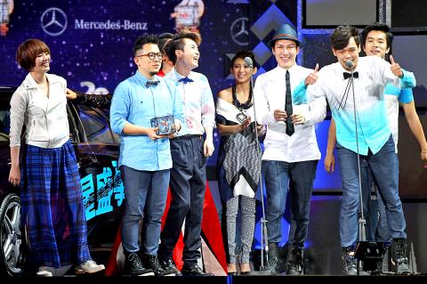 Taiwanese pop music band Sodagreen (蘇打綠) won the best band award, while Taiwan’s Show Luo (羅志祥) and Rainie Yang (楊丞琳) won the most popular male and female artist awards respectively.