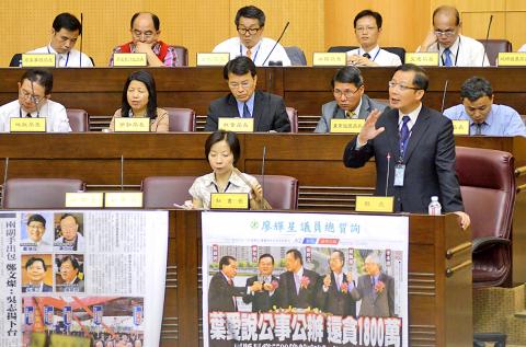 Yeh is accused of accepting a bribe of NT$16 million from Farglory Group chairman Chao Teng-hsiung (趙藤雄) to help the company win a tender in April for the construction of an affordable housing project in Bade City (八德), Taoyuan County.