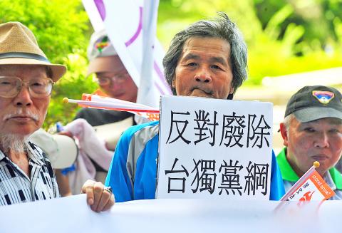 A group of pro-independence advocates expressed strong opposition to a proposal to freeze the clause by protesting in front of the DPP’s headquarters in Taipei yesterday and called for the proposal’s initiators, former DPP legislators Julian Kuo (郭正亮) and Chen Zau-nan (陳昭南), to resign from the party.