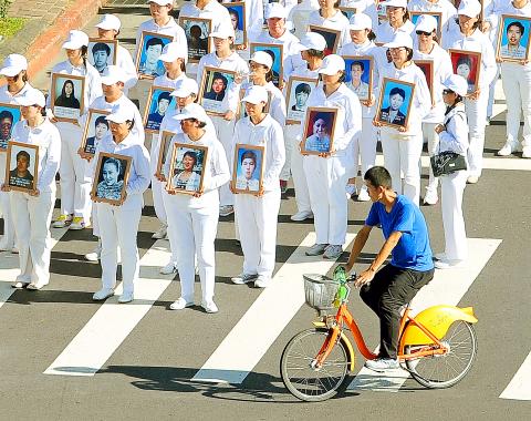 “Today marks the 15th anniversary of the CCP’s persecution on Falun Gong,” human rights attorney and Falun Gong practitioner Theresa Chu (朱婉琪) told the crowd on Ketagalan Boulevard. “As we remember those who have lost their lives or are suffering because of their beliefs, we lament that there are millions of others in China who are not aware of what’s truly happening to Falun Gong practitioners, that millions of people have not withdrawn from the CCP and that there are still people who are giving the CCP a hand in its persecution of Falun Gong practitioners.”