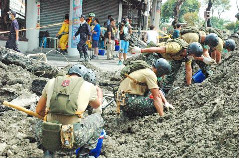 Tsai Chih-liang (蔡志亮), the owner of an electrical appliances store, said he opened for business on Sunday, but that the ruined roads have definitely affected customer numbers.