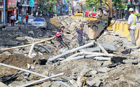 hsiung’s Cianjhen (前鎮) and Lingya (苓雅) districts last week have caused at least 1,500 stores to close temporarily as the city government works to rebuild roads and repair structural damage caused by the blasts.