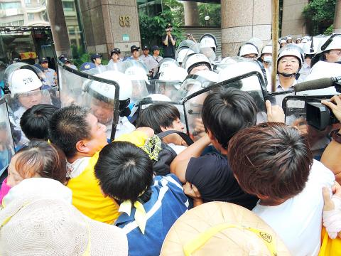 At the command of leader Lee Tsuei-ming (李翠明), the demonstrators rushed forward, trying to break the human wall formed by the police.