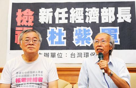 Taiwan Environmental Protection Union member Kao Cheng-yen (高成炎) told a press conference in Taipei yesterday that he was shocked at Duh’s remarks during a hearing held on Thursday last week in response to a petition demanding a plebiscite on the nuclear plant, which collected 120,000 signatures.