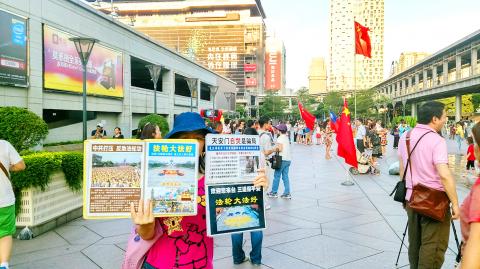 Falun Gong supporter Tsai Shou-jen (蔡守仁) said he and his fellow members chose Taipei 101 as a venue to promote their appeal with the hope of telling people about the Chinese government’s oppressive ways with people’s freedom of speech and religious groups.