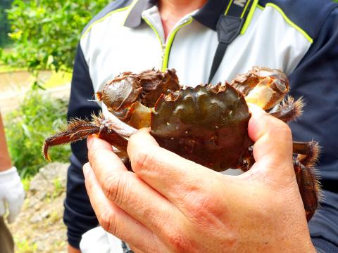 In a bid to replenish the rich biodiversity along Balian Creek (八連溪) in New Taipei City’s Sanjhih District (三芝), residents formed a patrol to thwart illegal poaching and pollution in the area. Eight years later, their efforts have yielded remarkable results, restoring a range of fish and crab species to the creek habitat, a New Taipei City official said.