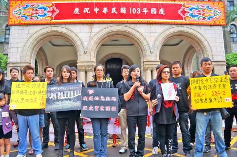 Wu Hsiao-ping (吳小平), section chief of the Judicial Yuan’s criminal department, received the group’s complaints, saying that the government has heard their concerns.