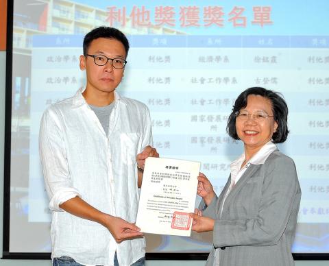 College of Social Sciences dean Lin Hui-lin (林惠玲) said Lin Fei-fan was awarded the honor because of the college’s recognition of the impact that the Sunflower movement has had on domestic and cross-strait politics.
