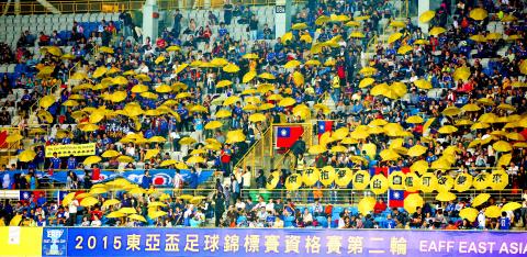 One Hong Kong reporter said it was a surprise to see such strong support from Taiwan’s sports community, adding that he was grateful that the fans staged such a display at an international soccer event.