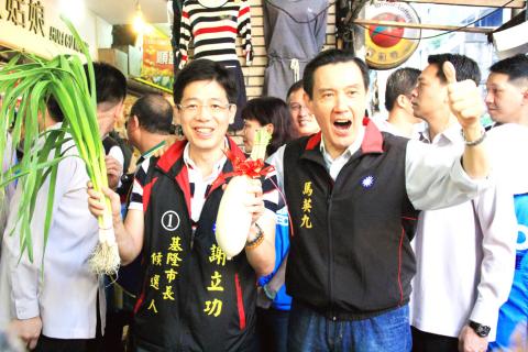President Ma Ying-jeou (馬英九), who doubles as KMT chairman, was in Keelung and Yilan yesterday morning to accompany party candidates canvassing streets for votes before returning to Taipei in the afternoon for KMT Taipei mayoral candidate Sean Lien’s (連勝文) parade.