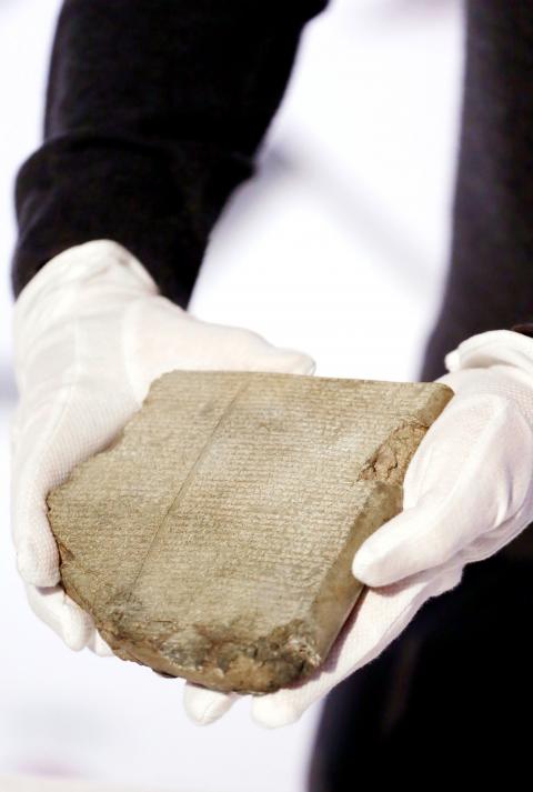 Another object is a clay tablet with cuneiform script written on it dated to between 700 BC and 600 BC. The tablet contains a chapter from the Epic of Gilgamesh, which is considered the world’s first great work of literature.