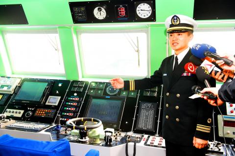 “It has two MTU V16 diesel engines that power a water-jet propulsion system, which enables the ship to sprint high in the water at high velocities, even in rough conditions,” navy spokesman Vice Admiral Wen Cheng-kuo (聞振國) said, adding that it has a range of 2,000 nautical miles (3,704km).