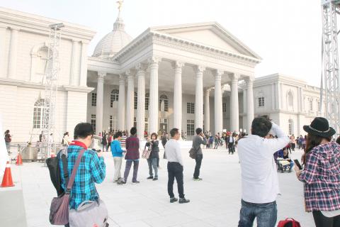 Visitors packed the main building — a 40,000m3 white European-style structure at Tainan Metropolitan Park — while a choir sang in the main hall during the official opening ceremony.