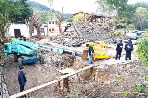 Construction Management Office section head Hung Te-hao (洪德豪) said the office has issued a halt-work order on the site, and that the film crew will be fined for not obtaining permission to build temporary facilities at the site.