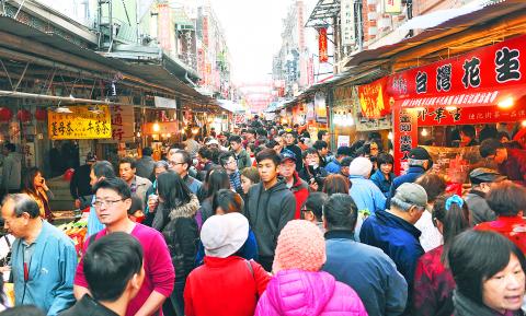 The Taipei City government Office of Commerce yesterday announced that there would be English-language tours for the street market that stretches along Dihua Street from Nanjing W Road to Guisui Street every year during the two weeks preceding the Lunar New Year holiday. The office estimates that more than 1 million people passed through the market last year.