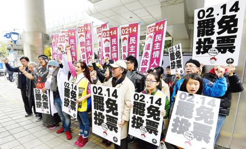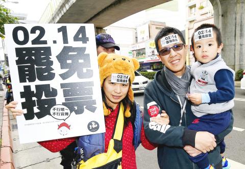 Academia Sinica researcher Huang Kuo-chang (黃國昌) also called on the residents of the two districts to show up at what he called “the most important event in Taiwanese democratic history.”