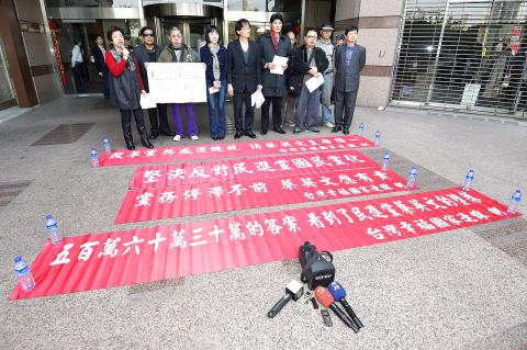 The protesters were met by DPP Department of Social Movements Deputy Director Chen Tzu-yu (陳子瑜), who promised to refer their petition to Tsai.