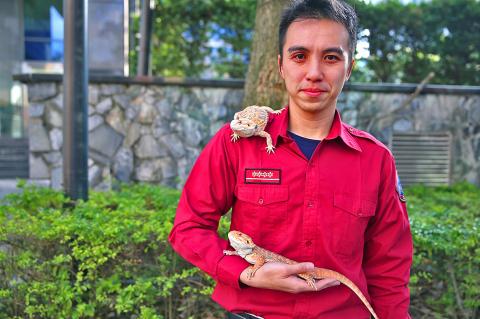 Taipei City Fire Department Captain Hsia Chih-chuan (夏志銓) is in love with dragons — not the fire-breathing kind, but bearded dragons, an agamid lizard native to Australia.