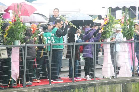 Casting flowers into the harbor in Keeling, hundreds of people — mostly families of victims of the March 8, 1947, massacre by Chinese Nationalist Party (KMT) troops — gathered to remember the tragedy.