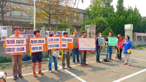 Earlier yesterday morning, members of the Taipei Railway Workshop Heritage Conservation Union congregated outside the site, demanding that authorities help to protect the compound and increase public participation in future plans.