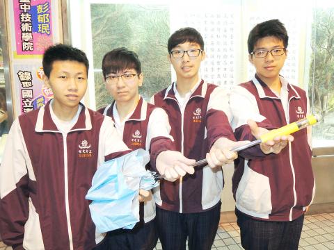 Student Fei Chun-chi (斐俊期) said that many people have been scared of taking the MRT since last year’s stabbing rampage, and that most MRT riders are not equipped to defend themselves against potential assailants. Fei said the students’ goal was to equip everyday items with defensive capabilities.