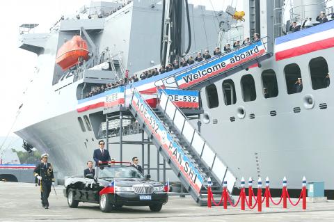Yesterday’s ceremony was held at the Zuoying (左營) naval base in Kaohsiung, the largest naval base in the nation.