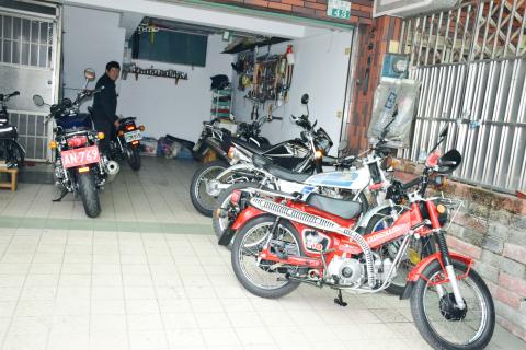 Also in his collection are a Honda TL and a Yamaha XTZ125 — both of which are dual-sport bikes — along with a Yamaha RX125 manufactured by Yamaha’s Taiwan branch and a Kymco Fox Hunt 150, a rare model especially manufactured for overseas markets that somehow came with a Kinmen County license plate, he said.