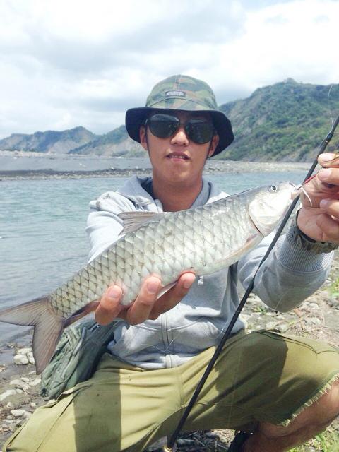 Ecology activist Tsai A-feng (蔡阿峰) said that he had recently caught three freshwater fish known as Spinibarbus hollandi — a genus of the carp or minnow family native to southern and eastern Taiwan — in the river in an hour.