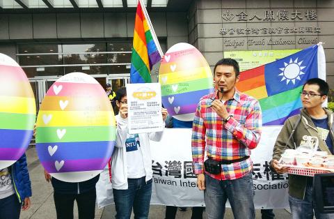Gay and Lesbian Awakening Day convener Chang Ming-hsu (張明旭) said groups that oppose same-sex marriage — such as the Alliance of Religious Groups for the Love of Families — should not be considered representative of Taiwan’s Protestant or Catholic communities.