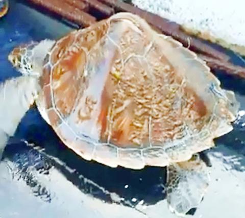 Cheng I-jiunn (程一駿), a marine biology professor at National Taiwan Ocean University, said it appeared from the photo to be a regular green sea turtle that had probably been raised in captivity or on a farm and was later abandoned or had escaped.