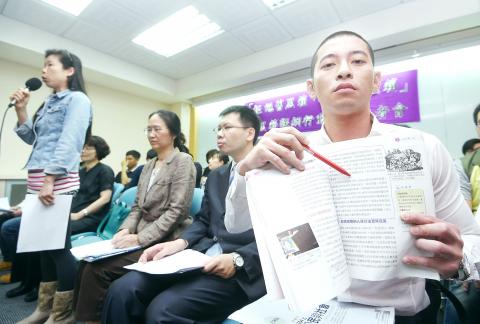 Action Coalition of Civics Teachers spokesman Huang I-chung (黃益中) compared textbooks from before and after the adjustments to show that the changes failed to simplify the texts and to reduce pressure on social studies teachers, counter to ministry statements.