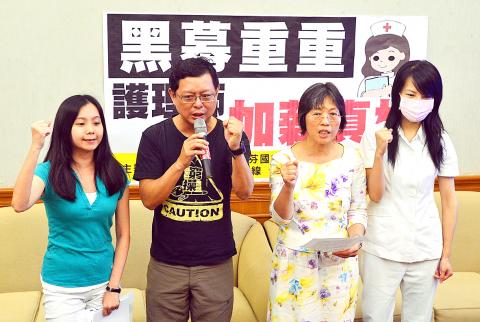 Union president Jane Lu (盧孳艷) said that a recent NT$2.5 billion (US$81.2 million) government project led by the Ministry of Health and Welfare has failed to improve working conditions for nurses as a result of lax oversight, while claims that the wages of nurses have improved were mostly false.
