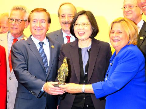 Ros-Lehtinen presented Tsai with a miniature of the Statue of Freedom that stands atop the US Capitol’s dome.