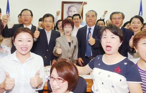 While doubts continue to cast a pall on the KMT presidential primary amid rumors that many of the party’s lawmakers are hesitant about endorsing her bid, about 40 legislators attended a party caucus meeting yesterday and cheered for the deputy speaker.