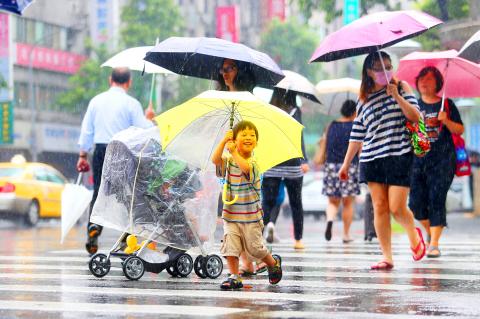 Meteorologist Peng Chi-ming (彭啟明) said the front is expected to remain over Taiwan today, continuing to bring heavy rain, but that the wet weather is set to ease tomorrow, after the front leaves.