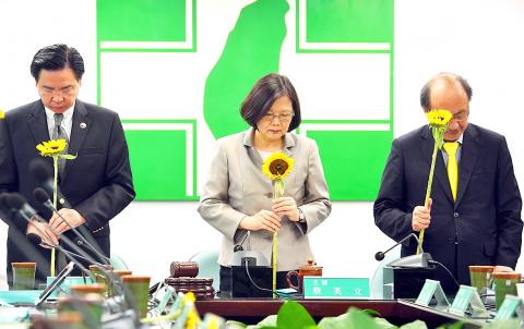 “Tsai has made it very clear that she will continue to push for peaceful and stable development across the Taiwan Strait based on public opinion and the fruits accumulated from cross-strait exchanges over the past two decades under the framework of the ROC constitutional system,” DPP spokesperson Cheng Yun-peng (鄭運鵬) said.