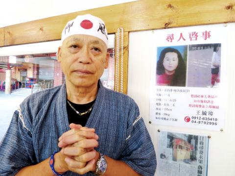 After months of searching for his Taiwanese wife, who went missing in her hometown in Changhua County three years ago, a Japanese chef has opened a ramen restaurant in Nantou County in the hopes of finding his devoutly Buddhist wife in the heartland county bristling with temples.