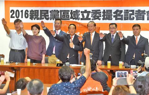 The PFP held a press conference in Taipei to announce its five legislative candidates for the Jan. 16 elections. Three of the candidates are former Chinese Nationalist Party (KMT) legislators, including Chang Sho-wen (張碩文), who just withdrew from the KMT earlier this week.