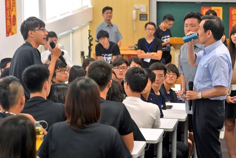 A student leader yesterday asked President Ma Ying-jeou (馬英九) to withdraw controversial curriculum guideline changes at a meeting held at National Taiwan University. Ma rejected the appeal, saying that “people on the other side” would oppose such a move and the demand is “out of proportion.”