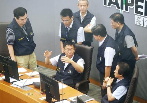 Meanwhile at the Emergency Operations Center, Ko directed all city departments to submit their typhoon SOPs and “checklists” to the Taipei City Fire Department for consolidation.