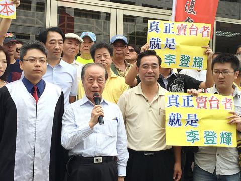 Yok filed the charge with the Taiwan High Prosecutors’ Office, with pro-unification supporters shouting slogans such as “Lee Teng-hui, go back to Japan.”