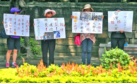 Shih Hsin University professor Wang Hsiao-po (王曉波), a Chinese Nationalist Party (KMT) member and convener of the Ministry of Education’s (MOE) curricular adjustment committee, has accused opposition parties of hiding behind and instigating student protests.