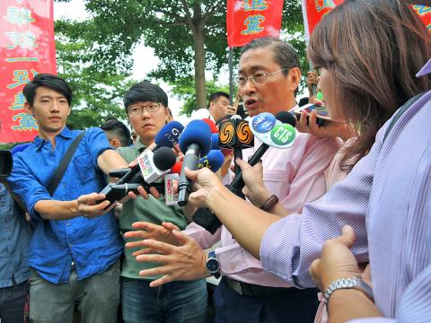 Former gang leader and China Unification Promotion Party chairman Chang An-le (張安樂) — better known by his Bamboo Union nickname “White Wolf” — later appeared to talk to the media about the demonstration.