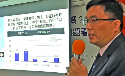 Huang said 84.8 percent of respondents said that the KMT’s assets have caused unequal electoral footing for political parties.