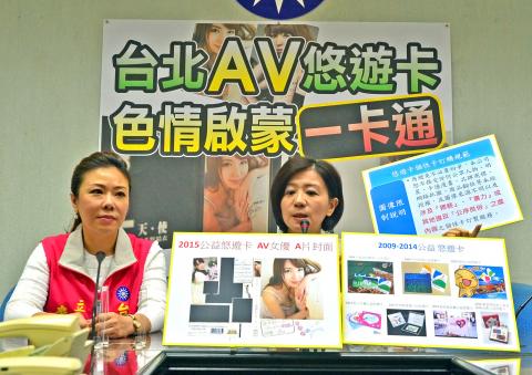 The Chinese Nationalist Party (KMT) legislative caucus yesterday panned Taipei EasyCard Corp for using images of Japanese adult video actress Yui Hatano to promote sales, calling for an immediate halt to plans to sell cards featuring Hatano’s portrait, and for Taipei Mayor Ko Wen-je (柯文哲) to tender a public apology.