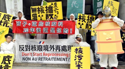 Suggesting that the mostly likely bidder of Taipower’s project would be a French company, alliance member Wu Cheng-cheng (吳澄澄) said that France had promulgated a law prohibiting storage of imported nuclear waste in French soil and stipulating that companies must return imported nuclear waste to its nation of origin after processing.