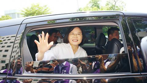 Tsai said that if she is elected, she would invest the majority of the national defense budget into developing domestically produced military hardware and technology, which would encourage growth in related high-tech industries, adding that her proposal to develop domestically built submarines would benefit the ship-building industry in Kaohsiung.