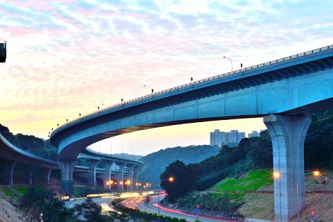 The award-winning viaduct project runs for about 40km from New Taipei City’s (新北市) Wugu District (五股) to Taoyuan’s Yangmei District (楊梅). Work began in October 2009 and concluded in April 2013 and the project cost NT$88.2 billion (about US$2.7 billion at current exchange rates).