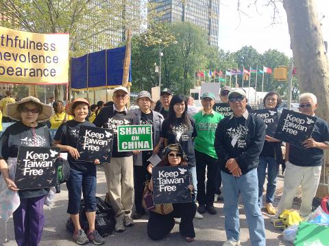 Dozens of Taiwanese Americans protested Taiwan’s exclusion from the UN this past week as Pope Francis and Chinese President Xi Jinping (習近平) joined other world leaders in addressing the 70th UN General Assembly in New York City.