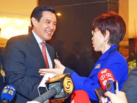Ma, who left yesterday’s event early, had a chance to shake hands with Hung before leaving. He did not respond to media queries about Hung’s cross-strait policy and whether he would talk her out of the race. He said he would stand by the decision made by KMT headquarters.
